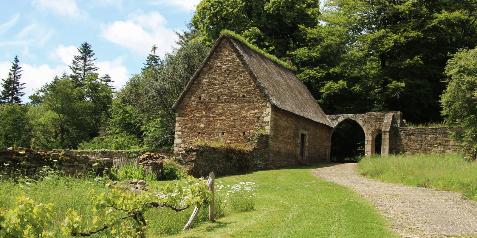 L‘accès principal à l‘Abbaye se faisait par cette entrée ouest, qui ouvre sur une longue route, la Rabine, et traverse la forêt de Carnoët.