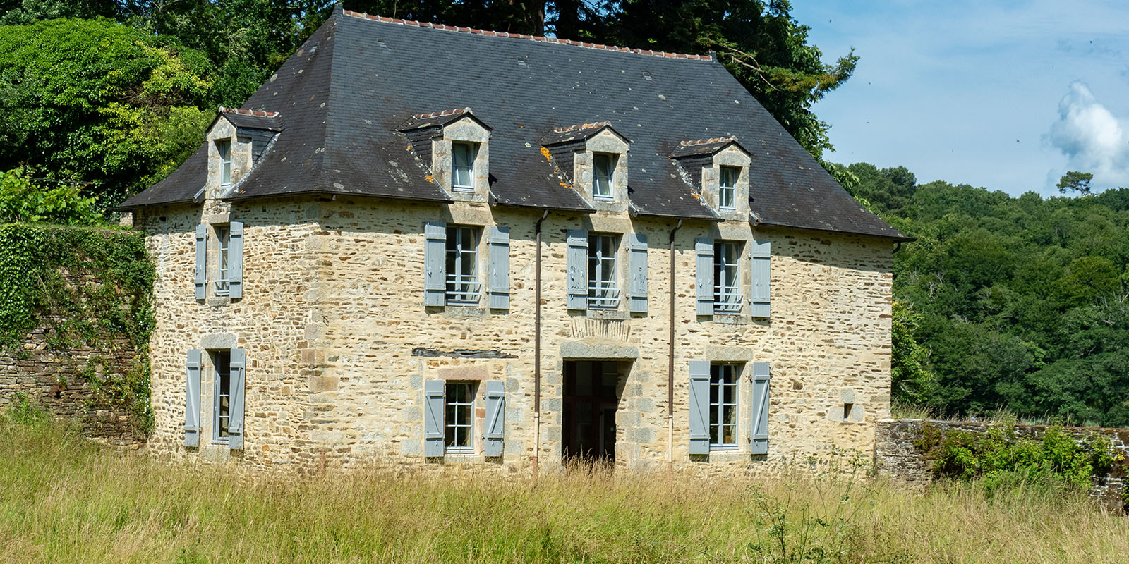 Cette maison est la copie parfaite du manoir breton avec sa porte centrale et un escalier en pierre, aménagé à l’arrière de la bâtisse dans une tourelle ronde.
